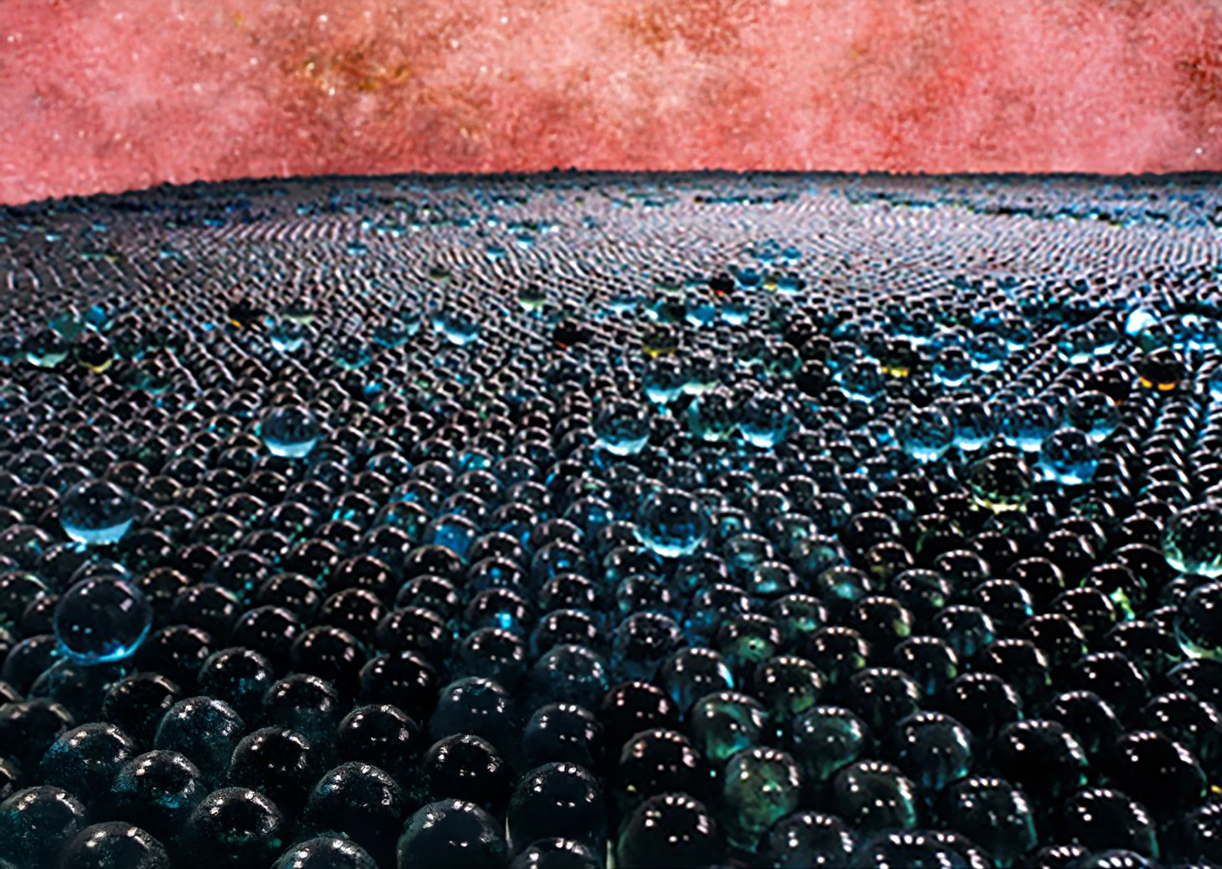Immersive installation featuring 10,000 marbles spread across the gallery floor, inviting visitors to walk, interact, and reflect on poetry, fragility, and movement.